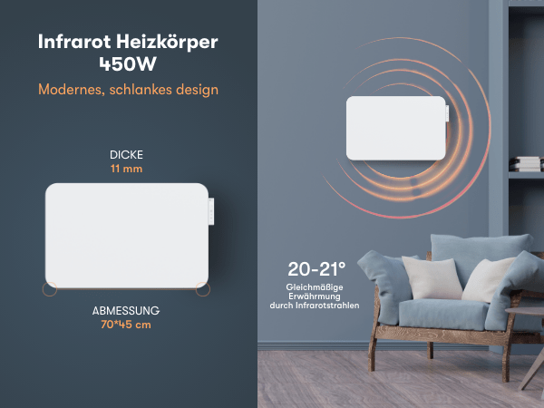 Metall Infrarotheizung 450W mit Smart Thermostat