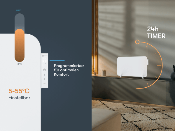 - Timer-Funktion: Programmieren Sie Ihre Heizung nach Ihrem Zeitplan für maximalen Komfort.