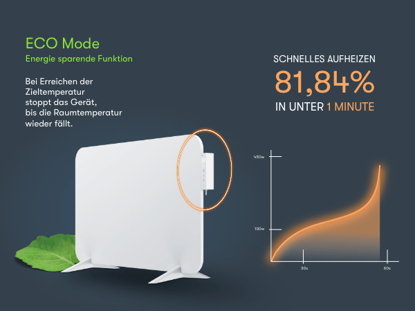 - Schnelles Aufheizen: Genießen Sie sofortige Wärme dank der leistungsstarken Infrarottechnologie. Ideal für Räume bis 10m².