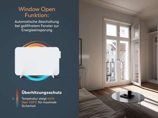 Automatische Abschaltung bei geöffnetem Fenster zur Energieeinsparung.