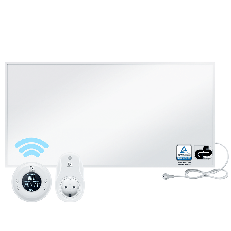 Wahlweise sind unsere Infrarotheizungen auch mit Thermostaten erhältlich. Sie können sich für ein Funk Thermostat mit Fernbedienung (BRTF) oder einem Smart Thermostat mit WIFI & App (BRTW) entscheiden. Das WIFI-Thermostat ermöglicht Ihnen einen Anschluss an das Smart Home, sodass Sie Ihre Heizung von überall bequem und flexibel mit Hilfe von Alexa, Google Home oder über unsere App Steuern können (aktuell werden nur 2,4GHz unterstützt). Da in unseren Produkten der gleiche Smart-Chip verbaut ist, können auch mehrere Heizpaneele in einer App oder über das Smart Home gesteuert werden.